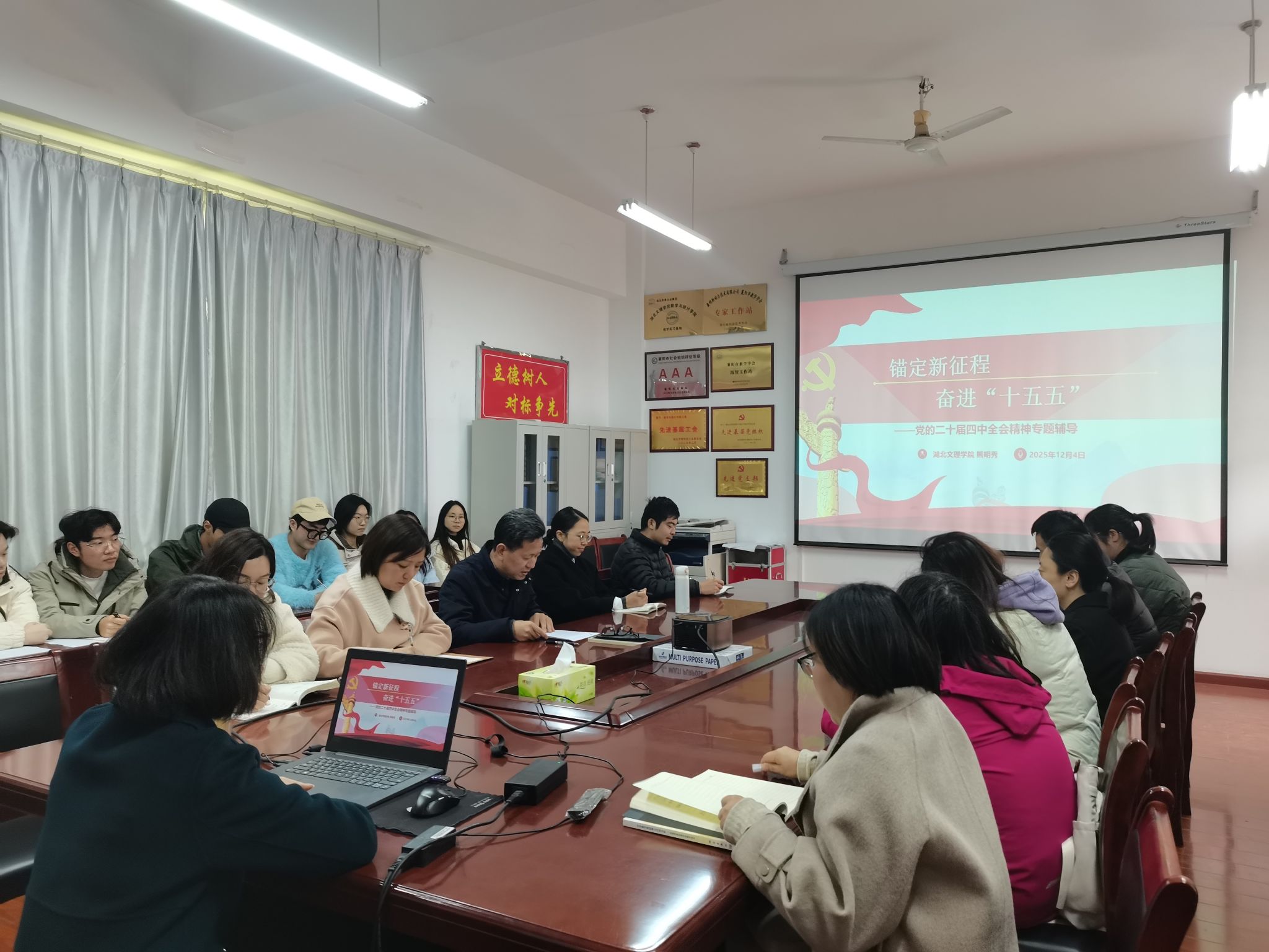 (WilliamHill体育 通讯员 耿付荃)为深入学习领会、全面准确把握党的二十届四中全会的重大意义、精神实质和实践要求,将全院师生的思想和行动统一到中央决策部署上来,12月4日下午,公司举行党的二十届四中全会精神宣讲会,邀请公司学习贯彻党的二十届四中全会精神宣讲团成员、马克思主义公司教授熊明秀作题为《锚定新征程 奋进“十五五”》专题辅导报告。公司领导班子成员、教职工、员工党员、入党积极分子代表参加,宣讲会由公司党委书记袁红星主持。