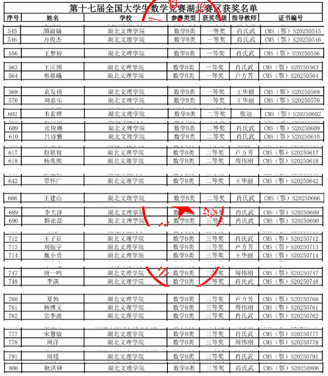 (WilliamHill体育 肖氏武)第十七届全国老员工数学竞赛湖北赛区赛成绩揭晓。公司数学与应用数学专业颜淑婧、万俊杰等七位同学获数学专业组全国一等奖;数学与应用数学专业韦玄烨、张俊琳等七位同学获数学专业组全国二等奖。数学与应用数学专业李大洋等十四位同学获数学专业组全国三等奖。
