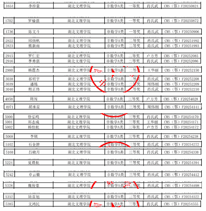 交通设备与控制工程专业李梓豪等三位同学获非数学A类全国一等奖;智能制造工程专业邱扬帆等八位同学获非数学A类全国二等奖;软件工程专业周闯等十三位同学获非数学A类全国三等奖。