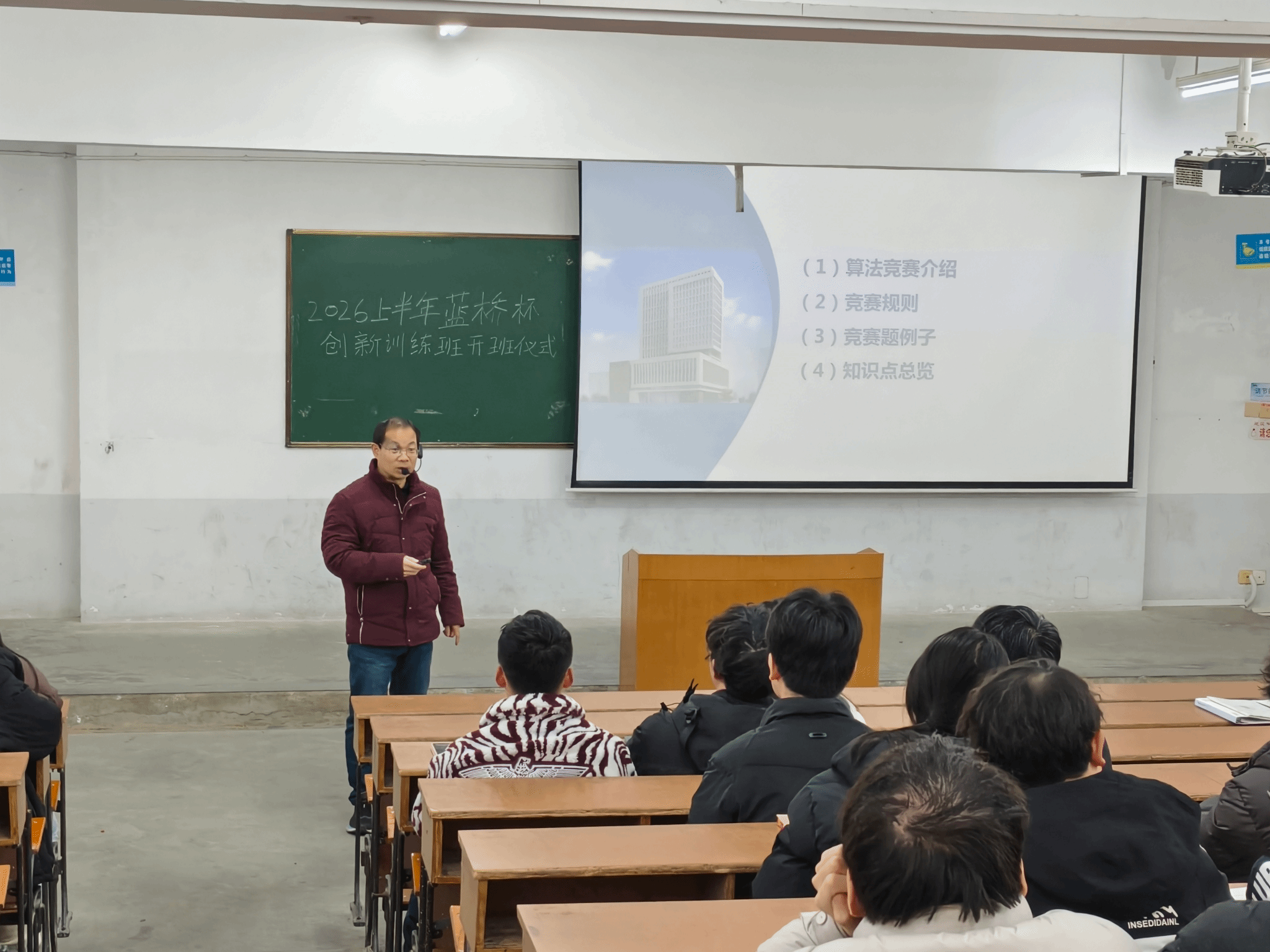 开班仪式上,陈仕军对蓝桥杯竞赛的背景、规则、内容要求及参赛所需的基础知识进行了系统介绍,并详细说明本次实践班的课程安排、学习目标及上课注意事项。为帮助同学们更好地理解竞赛题型与解题思路,结合往届省赛真题,现场演示了如何分析问题、构建算法模型,引导同学们思考解题策略,进一步明确了备赛所需的知识结构与能力储备。
